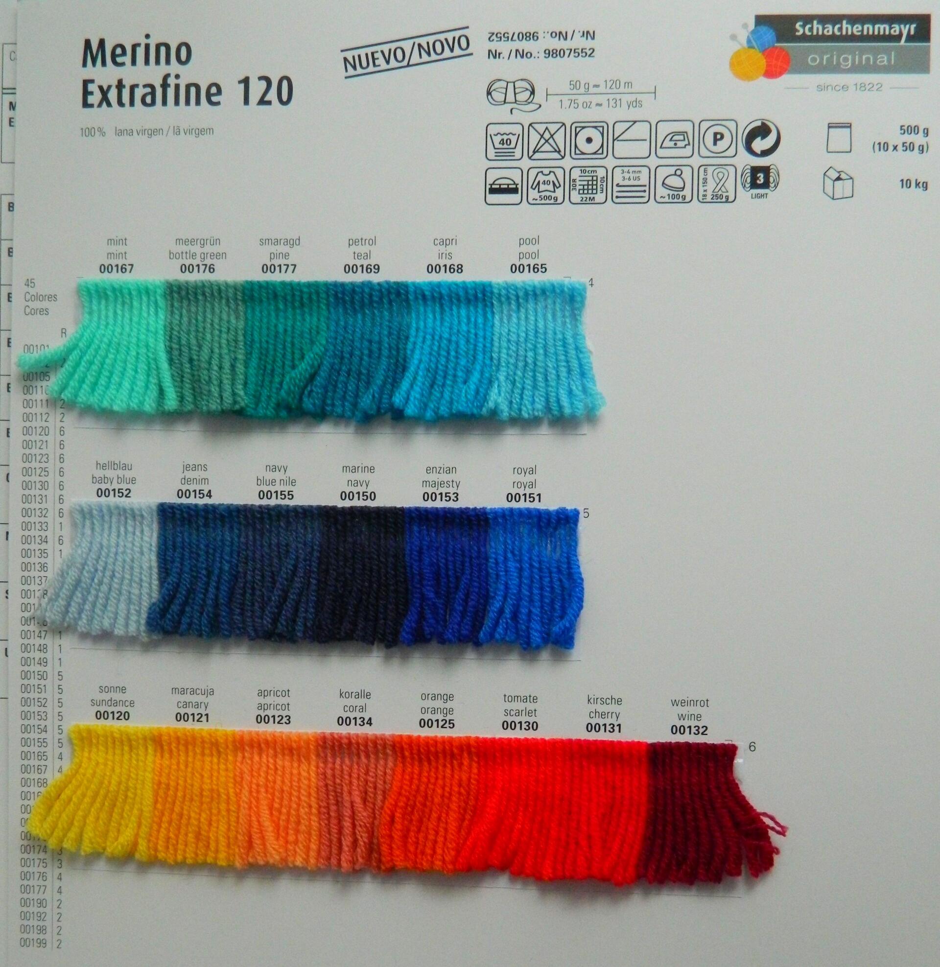 MERINO EXTRAFINO 120 ART:9807552 100 % LANA VIRGEN 50 GRMOS PTE 10 OVILLOS